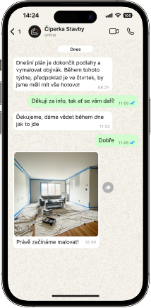 Každý den vás informujeme o průběhu prací prostřednictvím zpráv na WhatsApp.